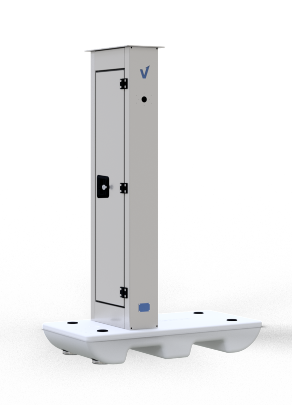 Montiert auf einer mobilen Betonplattform mit Stellfüßen ist die V-Control sofort einsatzbereit und kann ohne